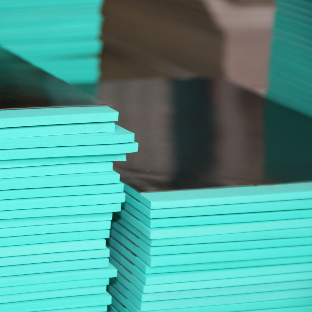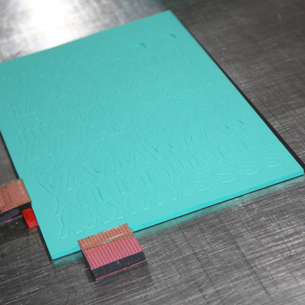 Nach dem perfekten Zuschnitt wird jede weiche Moosgummiplatte mit einer Lage des Magic-Magneten zusammengeklebt und einen ganzen Tag lang für ewige Haltbarkeit gepresst.