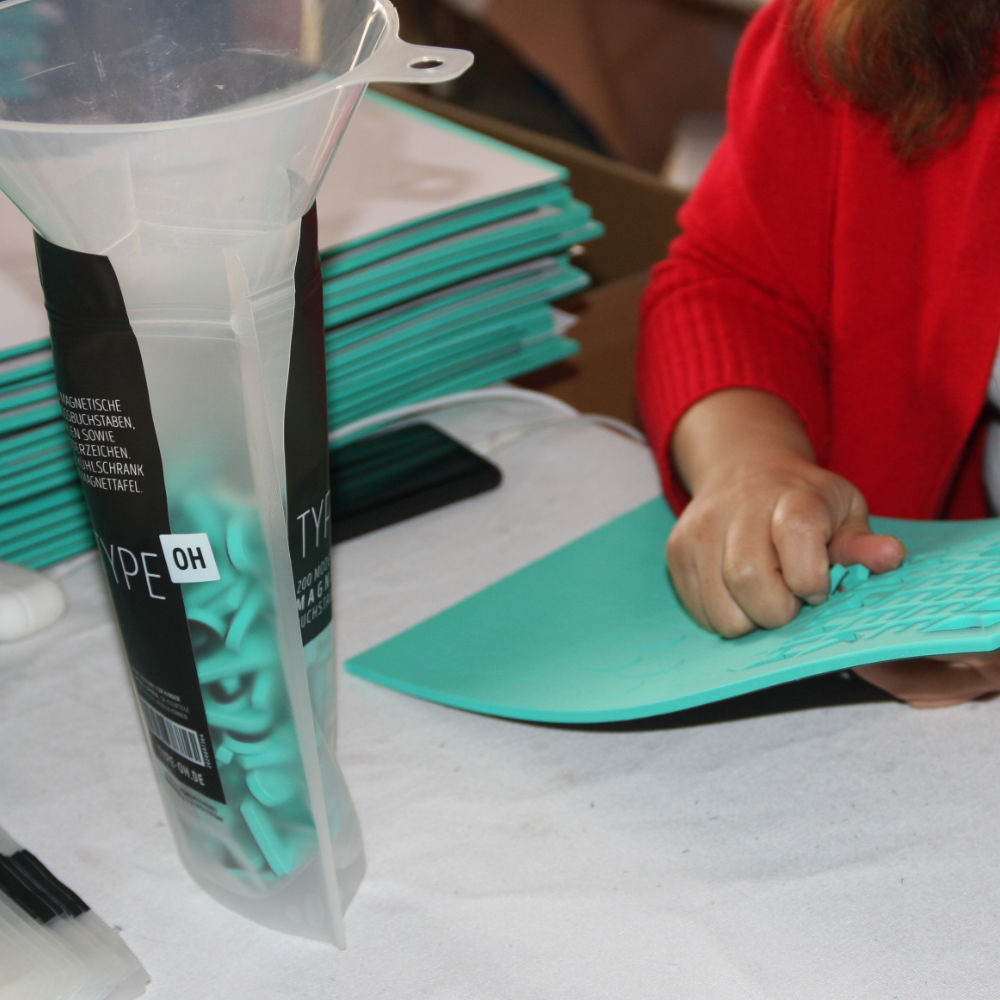 Seit dem Corona Jahr 2020 werden die Magnetbuchstaben in einer Moosgummi-Manufaktur, die die Beiden auf ihrer letzten Asienreise durch einen glücklichen Zufall in der Nähe von Yiwu kennengelernt haben, hergestellt. In 10 handwerklichen Schritten werden dort aus buntem Moosgummi und Magic-Magnetband die modernsten Magnetbuchstaben der Welt!
