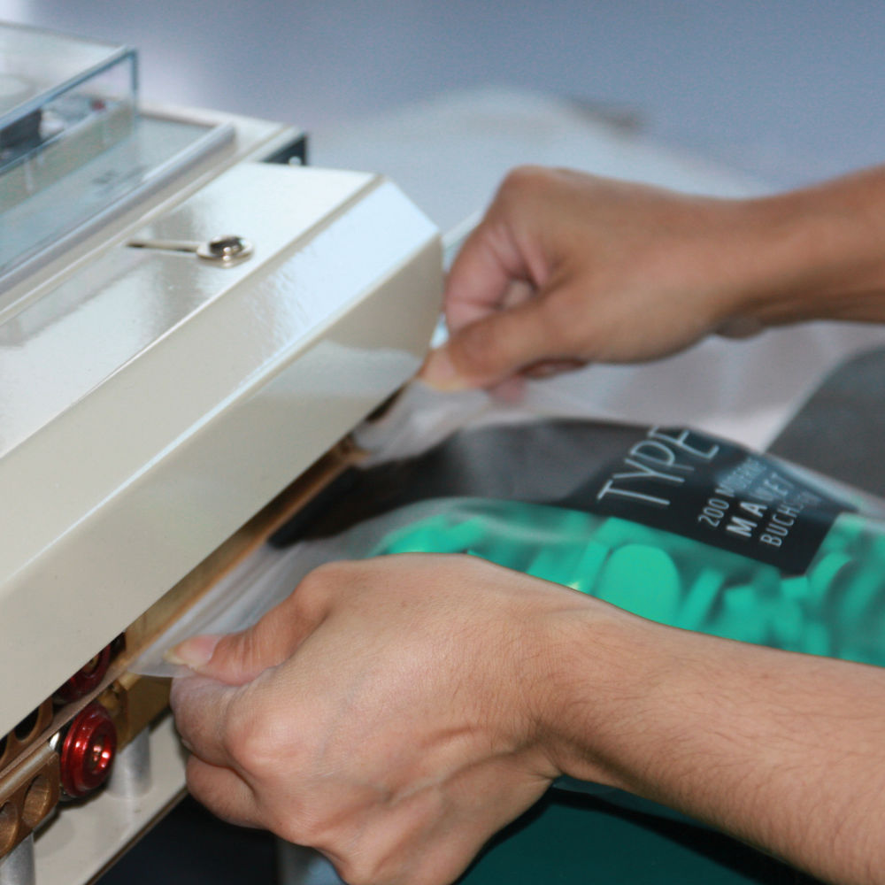 vorsichtig aus den Platten gedrückt, kontrolliert und im Anschluss sorgfältig in unsere robusten Beutel gesteckt.